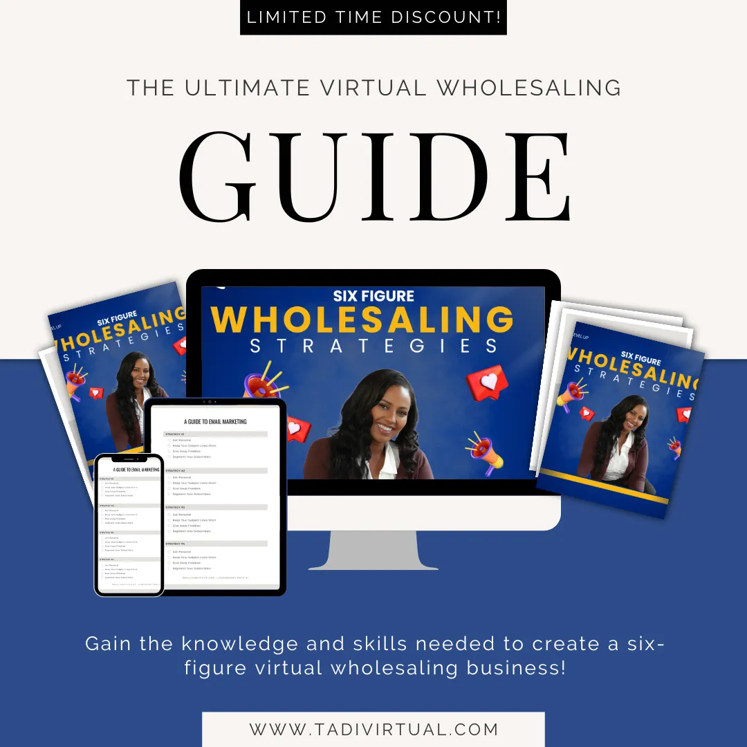 The Full Virtual Wholesaling Guide that when you implement these strategies , will get you 10k/mo within the first month of implementing.